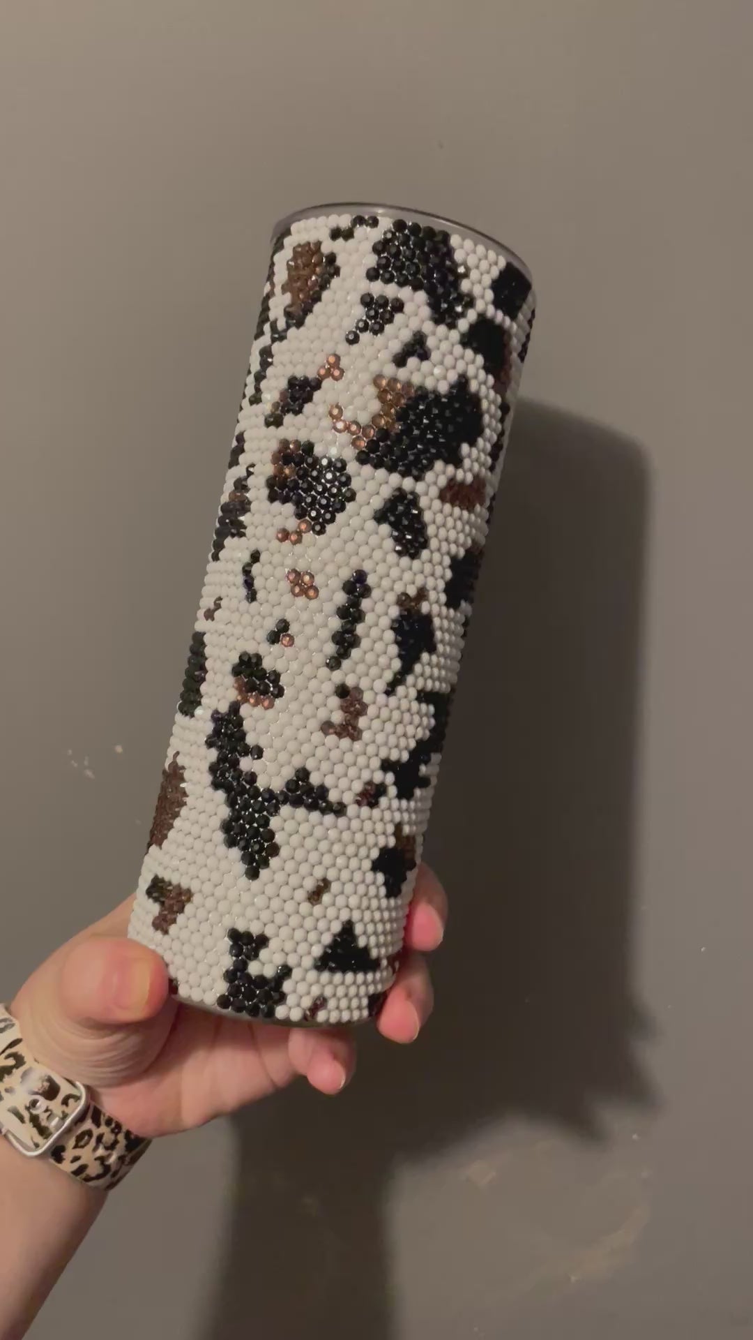 These cow print rhinestone tumblers are made to order and take 8-14 days to complete